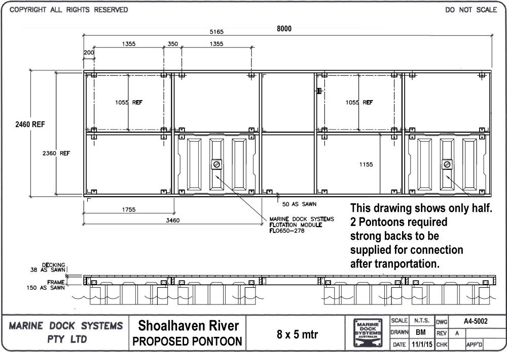Drawing a4-0643 Pontoon 5.2 mtr x 2.5 (6 x 650 Litre Floats)